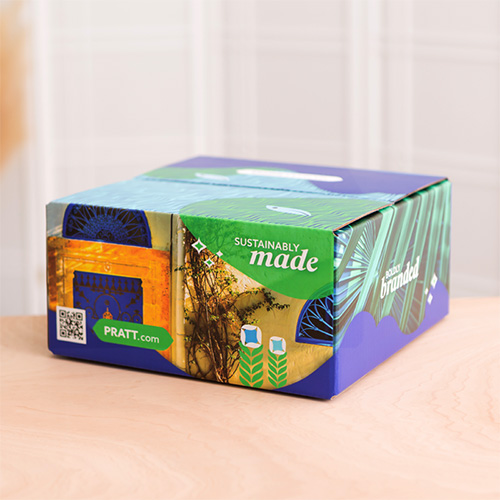 Pratt's online editor makes designing your custom packaging easier than ever! We digitally print your art on our corrugated board in CMYK, often referred to as 4-color process, ink with a UV cure. The UV cure ensures your art is set to withstand basic elements and won't rub off. Our printers are calibrated to SWOP standards, but no two digital printers are the same, and we cannot match a PMS color. If color matters to you, please explore our proof options.